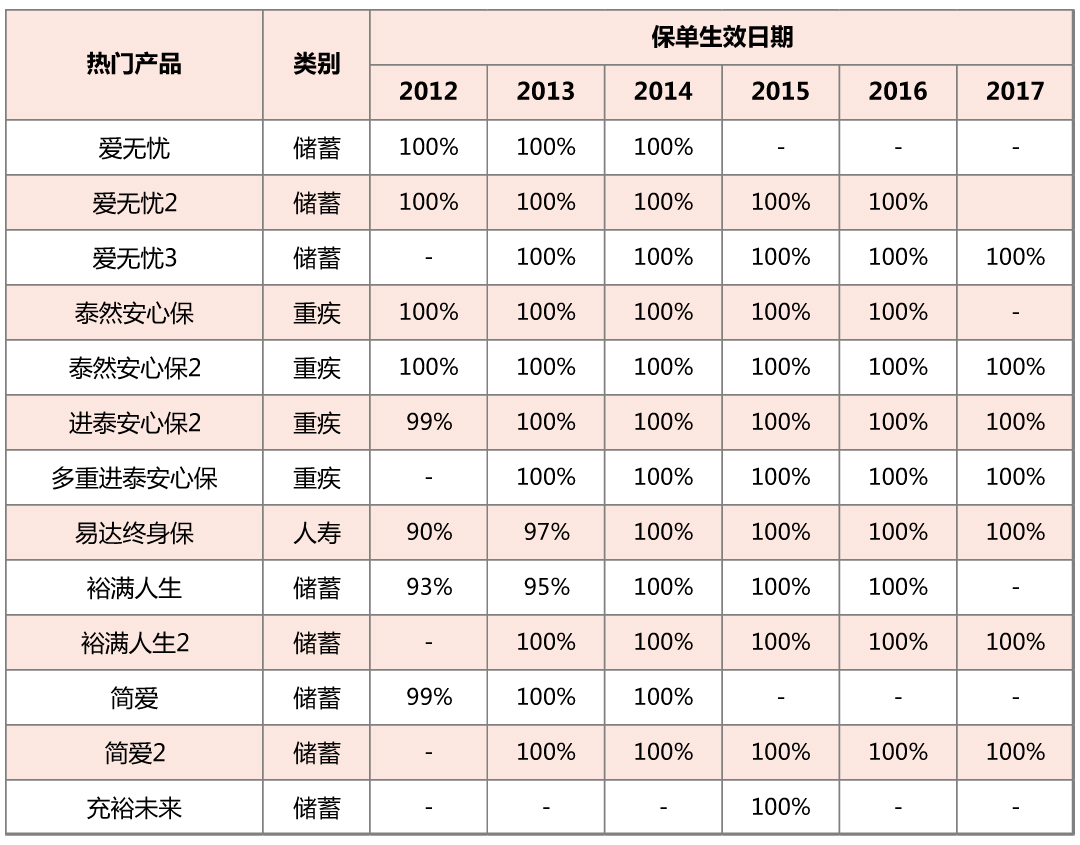 查询网址:http://www.aia.com.hk/zh-hk/our-products/further-product-information/participating-products/fulfillment-ratio.html