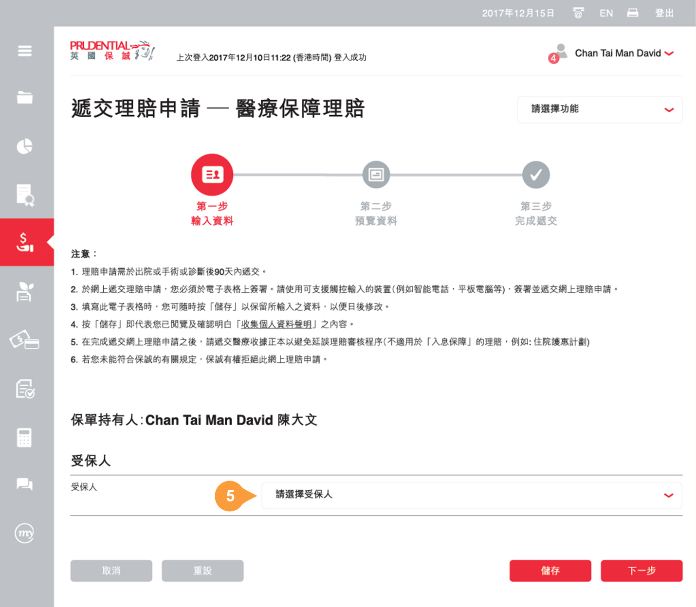 20b.如您需要暂缓递交理赔申请,您可随时按「储存」以保留所输入之数据,以便日后修改。