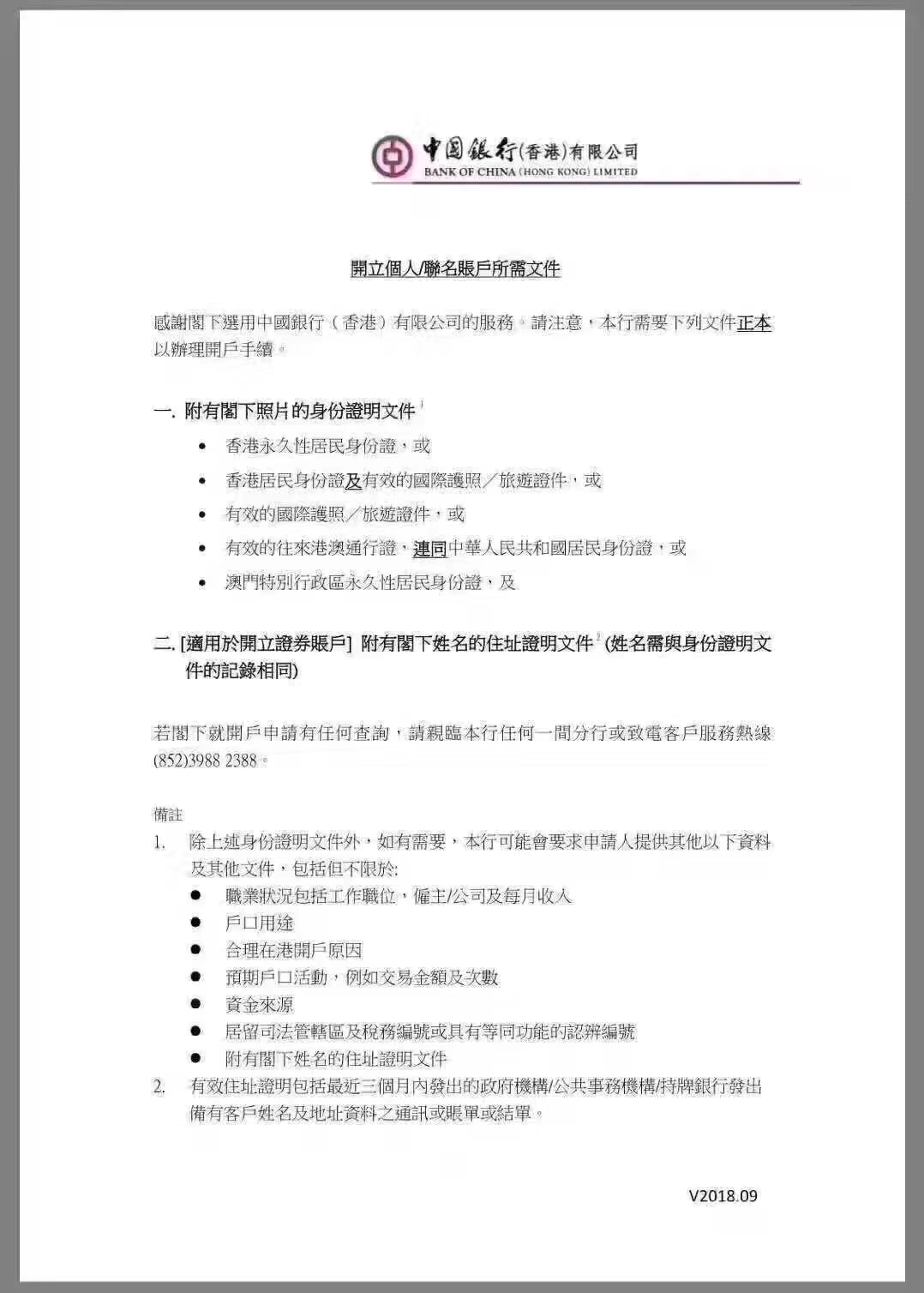 那么此消息是否属实呢?有专业人士直接给出了一张中银香港的新的开户要求: