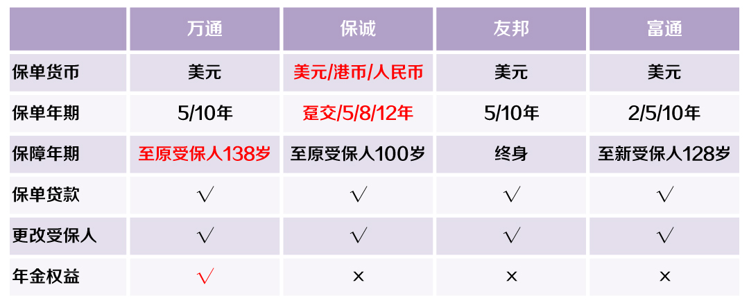 保单货币: 美元