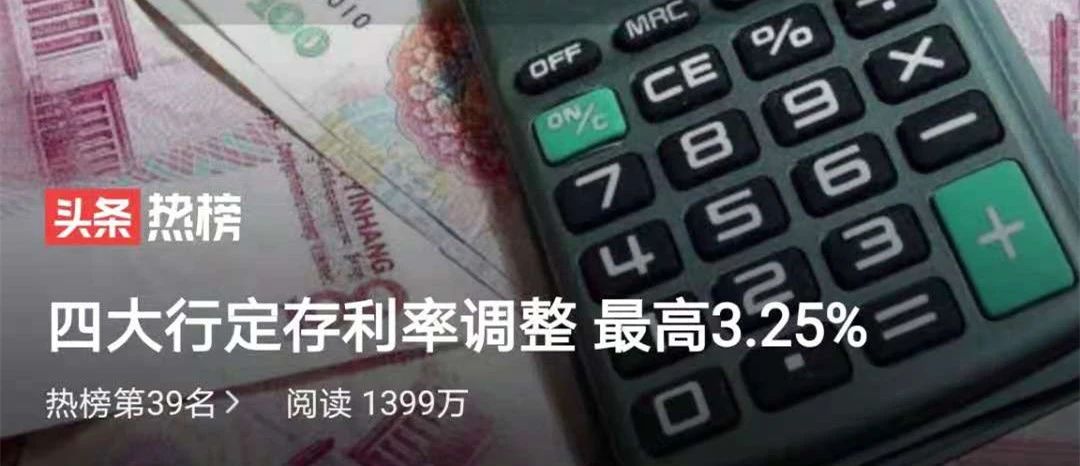 目前,四大行大额存单利率最高3.25%。就在这周,大额存单利率最高为3.85%。而中小行大额存单最高利率直接从4.1%调整到3.55%。100万存3年,利息差了5000元和6000元。